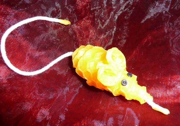 Docht an einer Seite für Nase mit Bienenwachs unkneten, andere Seite als Schwänzchenende einen Knoten machen, Docht auf Platte einlegen und Platte immer bissel mittig zusammenrollen, muss man bissel üben.